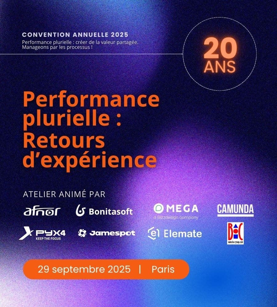 2025, une convention particulière au cours de laquelle France Processus fêtera ses 20 ans : Rejoignez-nous pour une journée exclusive dédiée à la performance plurielle, à la création de valeur partagée et au management par les processus.